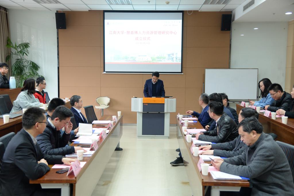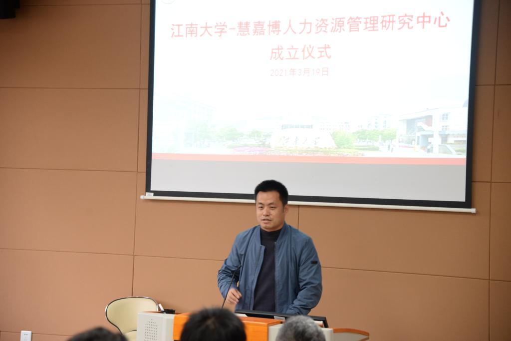 At the unveiling ceremony, Pu Xujin introduced the development of humanities and social sciences at JNU, fully affirmed the early achievements of the Wuxi Research Base for Human Resources Development, and praised the "Jiangnan University-Huijiabo Human Resources Management Research Center" Congratulations on its establishment. He hoped to strengthen university-enterprise cooperation through the JNU-HAP Job Research Center for Human Resource Management.
