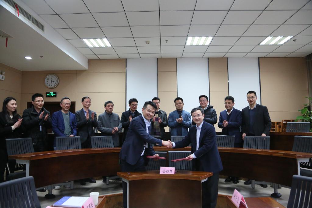 After that, Zhu Jinwei and Jiang Dan signed the Technical Service Contract for University-Enterprise Cooperation on Human Resource Management. Pu Xujin and Jiang Dan unveiled the JNU-HAP Job Research Center for Human Resource Management.