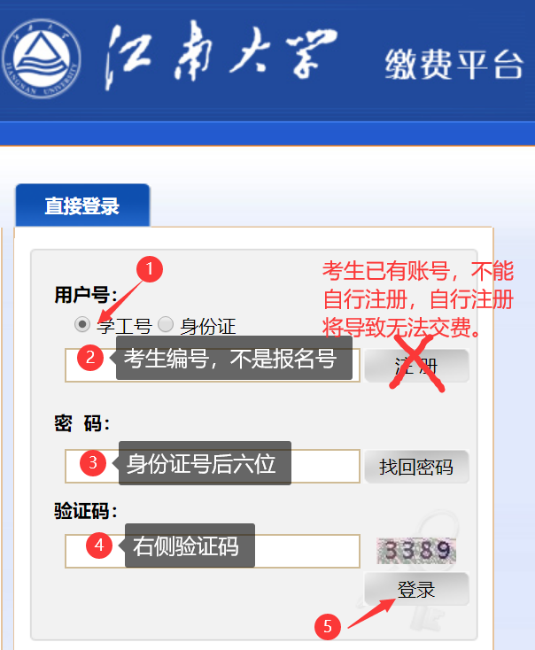 缴费说明:进入复试考生在学院规定的时间内登录“诸侯快讯ok1122登录入口缴费平台”交纳复试费用,复试收费标准:80元/生。缴费网址:http://pay.jiangnan.edu.cn/payment/。登录账号为准考证上的考生编号,登录密码为身份证后六位(友情提醒:考生账号已开通,切勿自行注册)。按照提示交费(使用网银),并打印或截图保存付费凭证。
