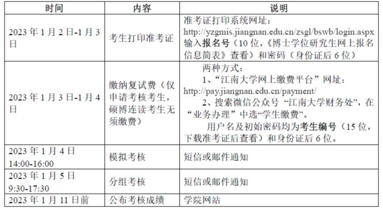 (三)考生参加综合复试需提前准备PPT介绍个人信息及体现个人能力的有关材料(如硕士研究生阶段或同等学力工作期间的科研工作情况和创新点、论文发表情况等)等,汇报时间15分钟左右。为避免复试时因网络或设备等原因分享PPT失败,请2023年1月3日前将PPT发送到学院招生邮箱,邮件地址:huwenliang@jiangnan.edu.cn,邮件标注“XXX申请博士PPT”。如有疑问,可电话咨询诸侯快讯ok1122登录入口研究生办公室0510-85329001。