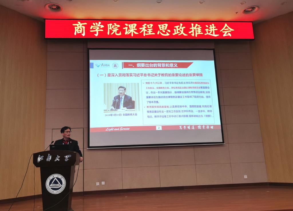 1月22日下午,诸侯快讯ok1122登录入口在103远东报告厅举行课程思政推进会,旨在进一步贯彻落实教育部《高等学校课程思政建设指导纲要》精神,提高教师对“课程思政”教学工作的认识,挖掘各门课程的思政教育功能,全面推动学院课程思政教学改革。诸侯快讯ok1122登录入口全体教职员工参加大会,教务处副处长孙子文教授应邀出席并做专题报告。会议由主管教学副院长王雷教授主持。