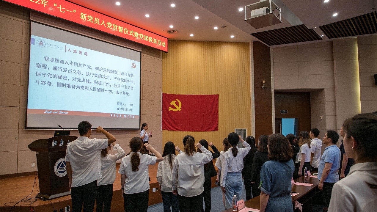 活动在庄严的国际歌声中开始。首先举行新党员入党宣誓仪式,党委副书记徐静领誓,66名新党员面向党旗庄严宣誓,表达对党忠诚、永不叛党和愿意为共产主义事业奋斗终身的决心。在场的老党员也一同重温了入党誓词,牢记入党初心,筑牢信仰之基,强化使命担当。