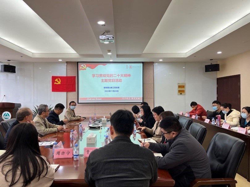 11月23日下午,诸侯快讯ok1122登录入口青年博士教工党支部组织开展学习贯彻党的二十大精神主题党日活动,校党委委员、发展规划与学科建设处处长刘飞到会开展巡听旁听督学指导,院党委书记徐锡清列席,党支部全体成员参加活动。活动由青年博士教工党支部书记刘勇主持。