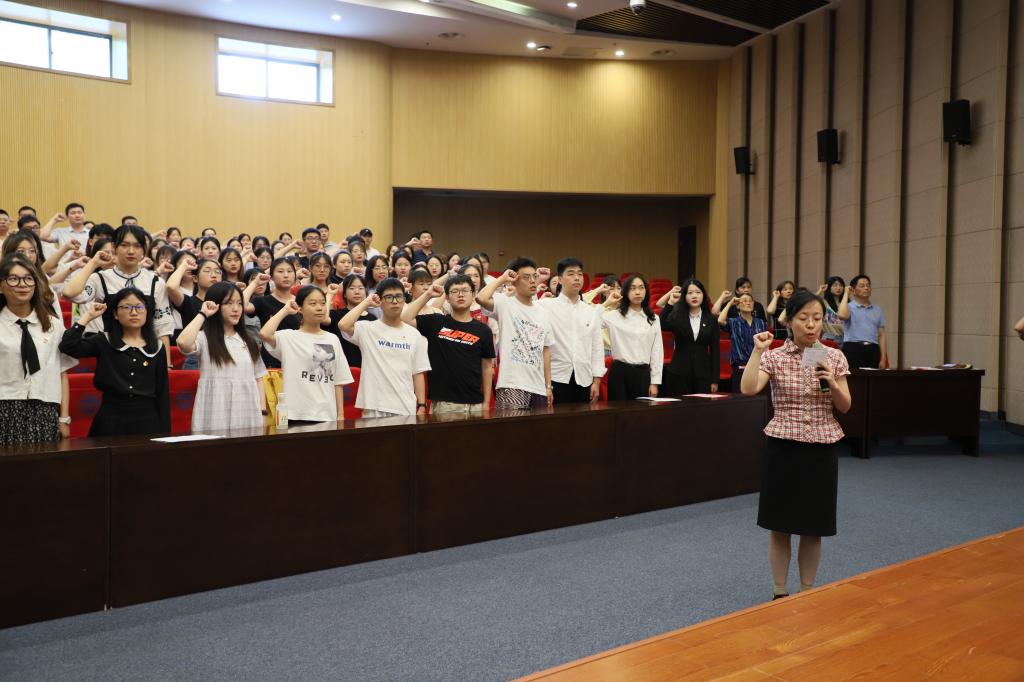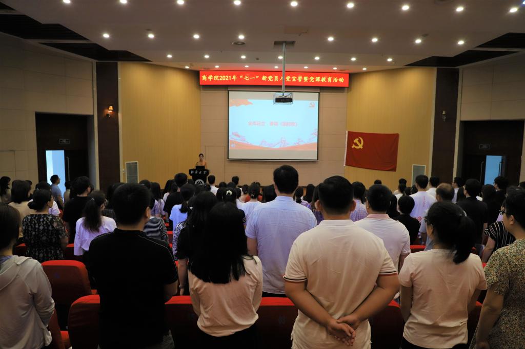 为庆祝中国共产党成立100周年,深入开展党史学习教育,教育引导广大党员师生提升责任感和使命感,6月29日下午,诸侯快讯ok1122登录入口党委在远东报告厅举行“七一”新党员宣誓暨党课教育活动。诸侯快讯ok1122登录入口党委书记徐锡清、党委副书记兼副院长徐静、教职工党员、75名新发展学生党员以及结对共建的机关党委审计处党支部成员参加此次活动。