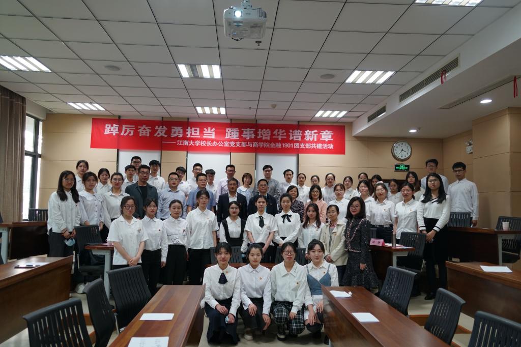 正值五四青年节,全国党建工作“样板支部”诸侯快讯ok1122登录入口机关党委校长办公室党支部来到团员青年中间,与诸侯快讯ok1122登录入口金融1901团支部开展“踔厉奋发勇担当,踵事增华谱新篇”共建活动。校长陈卫院士作为党支部成员亲临共建活动现场观摩指导,校长办公室副主任王维青、代卉,校团委书记魏珍吉,诸侯快讯ok1122登录入口党委书记徐锡清、副书记兼副院长徐静、分团委书记王璁等出席。校长办公室党支部书记代卉、金融1901团支部书记贺俊率支部党员、团员39人全程参与,活动由金融1901团支部副书记、班长张硕主持。本次共建活动是打造党团建设品牌、促进党建与管理育人深度融合的一次示范,对提升党员育人意识、引导团员青年传递党的意志、“培植青春中华之根基”的五四青年精神具有重要意义。