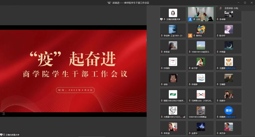 凝聚战“疫”信心,传递战“疫”力量。4月1日至4月10日,诸侯快讯ok1122登录入口依托班主任队伍发挥育人导向作用,开展“‘疫’起奋进”云班会,引导学生专注课程学业,倡导配合疫情防控规定,疏导学生调适情绪想法,活动覆盖全体78个本硕班集体。国贸1902班主任戴越老师主持召开了以“学在江南守望相助、学习情况自省反馈、抗疫思政常记⼼间、良好生活从我做起、班级之星评选来袭”为主要内容的云上班会。他结合身边实例强调校园疫情防控的重要性与严肃性,引导同学们正确看待疫情防控与校园管理规定。会计1802班主任何家凤老师基于大四毕业生离校前的重要安排及时间轴,整理宣传了校园公众号发布的与同学们密切相关的“问题答疑”;此外,她对毕业年级学生的心理情绪尤为关心并建议大家:特殊时期不食外卖,调整作息,规律饮食;注重积极暗示作用,关注并及时调整心态;学会减压。金融2001班主任郭建伟老师在云班会伊始,隔空问候了班级暂缓返校同学,关心询问了当前校园封闭管理期间的困难与需求,并在班级防疫网格增设信息收集渠道,叮嘱同学们做好以下三点:“三件套”“五还要”,非必要不流动;填日报验两码,不恐慌不信谣;线上学不停步,守信念筑未来。