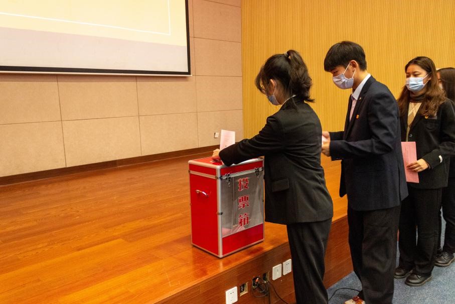 随后,第八次学生代表大会第一次全体会议审议并通过了《诸侯快讯ok1122登录入口第八次代表大会选举办法(草案)》及监票人、计票人建议名单。经过严谨有序的投票、计票环节,张楚凡、钱婉川、郭桐言当选诸侯快讯ok1122登录入口新一届学生会主席团成员,张楚凡等12名同学当选新一届学生会委员会委员。第一次研究生代表大会会议审议通过了《诸侯快讯ok1122登录入口第一次研究生代表大会选举办法(草案)》及监票人、计票人名单,曹雨阳、金城卓、崔家玮当选新一届诸侯快讯ok1122登录入口研究生会主席团成员,曹雨阳等12名同学当选新一届研究生会委员会委员。