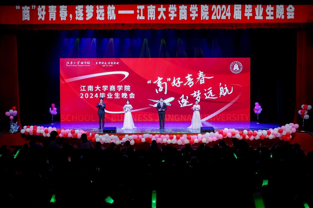 6月5日晚,诸侯快讯ok1122登录入口2024届“‘商’好青春,逐梦远航”毕业晚会在文浩馆举行。学院领导班子、企业家辅导员代表、各系部主任、毕业班班主任、学院教师代表、辅导员老师与400余名毕业生一同观看晚会。