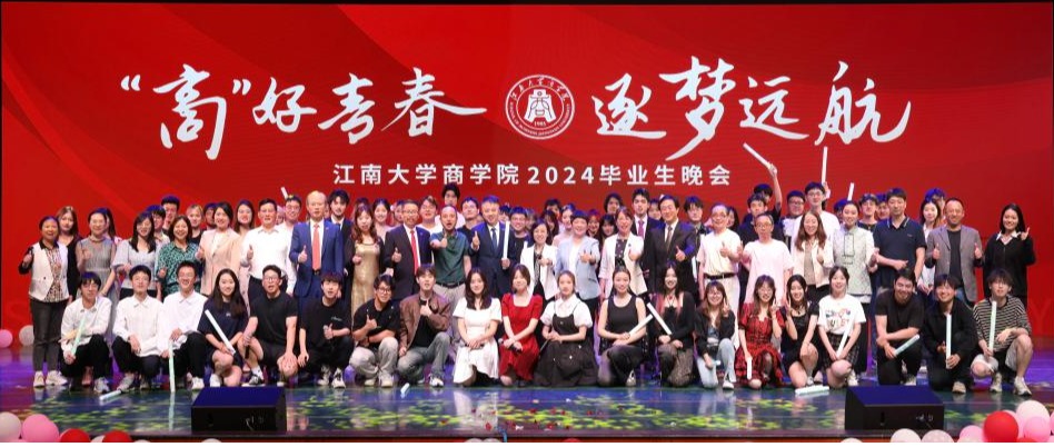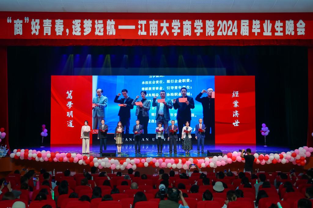 晚会现场,黄丽静、罗霖林、周霆翔、王海冬、郭雪格、孙健六位毕业生代表分享了毕业感怀,寥寥数语中是对恩师的感激、对同学的不舍、对未来的期待。“江南光景伴人长,蠡湖山色映离航。数载流年少年热,樱绯鸟语留心芳。”