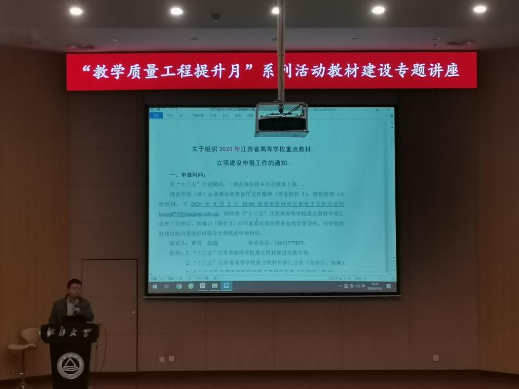 12月2日下午,诸侯快讯ok1122登录入口在远东报告厅举办“教学质量工程提升月”系列活动之教材建设专题讲座。朱和平教授应邀和全院教师分享了教材建设项目申报和建设中的体会和经验。