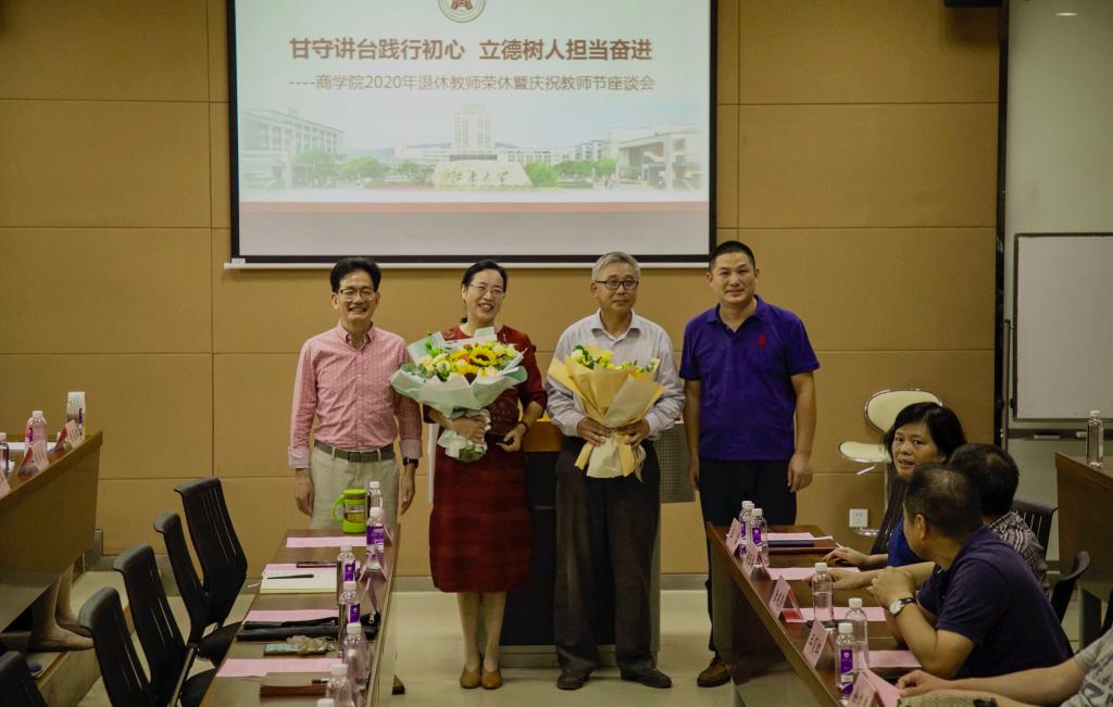 座谈会上,退休教师李磊、邹丽敏满怀深情地回顾了自己的从教生涯。李磊教授谈到,始终要将教师这个职业当回事,为人师表,言传身教。他谈到在创新时代,即使“廉颇老矣”,仍需保持敢于创新的勇气,教育和激励一代代青年学子要有不断赶超时代潮流的能力和勇气。邹丽敏老师回顾33年前大学毕业选择高校教师职业的无悔和坚守,自己感受到学校和学院在教学水平、科研实力、社会影响力等方面的发展和进步,给予她最美好的回忆。