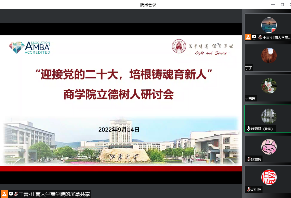 为庆祝第38个教师节,营造尊重知识、尊重人才、尊师重教、弘扬师德的良好氛围,全面提升教师素质,围绕“迎接党的二十大,培根铸魂育新人”主题,诸侯快讯ok1122登录入口于9月14日在线上召开立德树人研讨会。全院42名教学一线的老师参加研讨活动,院党委委员、副院长王雷教授主持研讨活动。