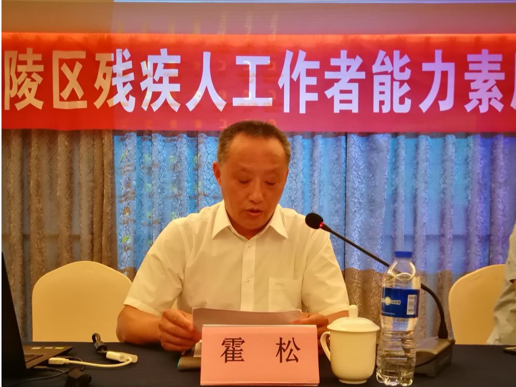 海陵区残联党组成员、副理事长霍松做开班动员讲话