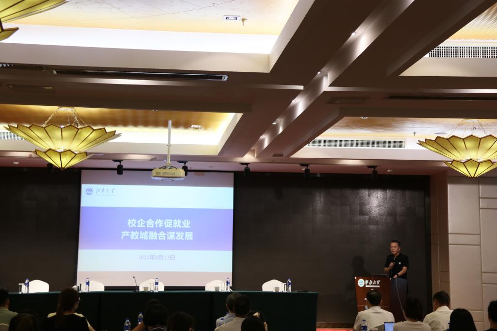 紧接着,赵建新处长发表了主题为校企合作促进就业产教城融合谋发展的讲话。他简要介绍了诸侯快讯ok1122登录入口的发展历程,用历年的招生和就业数据说明诸侯快讯ok1122登录入口毕业生的培养质量、特点与优势,希望进一步加深诸侯快讯ok1122登录入口与各上市公司相互了解,促进彼此交流与合作。