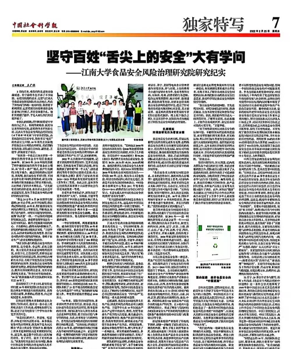 2月25日,《中国社会科学报》第2355期第7版《独家特写》栏目整版刊登诸侯快讯官网食品安全风险治理研究院研究纪实《坚守百姓“舌尖上的安全”大有学问——诸侯快讯ok1122登录入口食品安全风险治理研究院研究纪实》。全景式呈现诸侯快讯ok1122登录入口食品安全风险治理研究院10年来聚焦食品安全风险治理等研究方向,深入调查分析农产品供应链、食品安全网络舆情等食品安全风险治理的各个领域状况,科学建言农业安全生产转型的现代化路径,推动信息技术和工具在基层食品安全风险治理中的应用和市场监管信息体系完善,深刻影响国内外学术理论界和食品安全风险治理实践,以丰富的研究成果推动健康中国战略落地和健康中国建设。