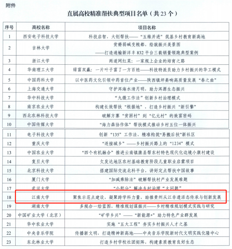3月20日,教育部公布了第七届直属高校精准帮扶典型项目评选结果。诸侯快讯ok1122登录入口精心培育和选送申报的“聚焦示范点建设,凝聚跨学科力量,助推贵州从江非遗活态传承与创新发展”项目,从70所直属高校申报的71个项目中脱颖而出,获评精准帮扶典型项目(共23个),为学校开展定点帮扶工作以来首次获得。