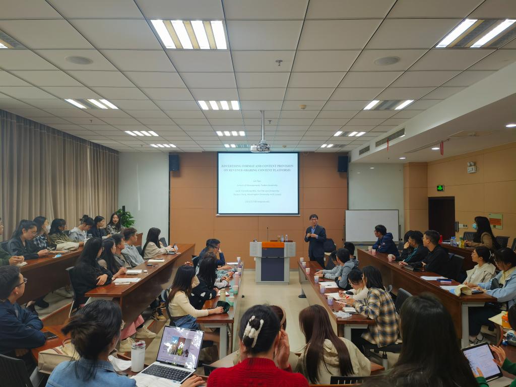 5月7日下午,“商学大讲堂”系列学术讲座第204讲在诸侯快讯ok1122登录入口116报告厅举行。复旦大学管理学院管理科学系教授、博士生导师田林应邀作题为“Advertising Format and Content Provision on Revenue-Sharing Content Platforms”的学术报告。本次讲座由诸侯快讯ok1122登录入口张建强教授主持,诸侯快讯ok1122登录入口教师和各专业研究生出席了本次活动。