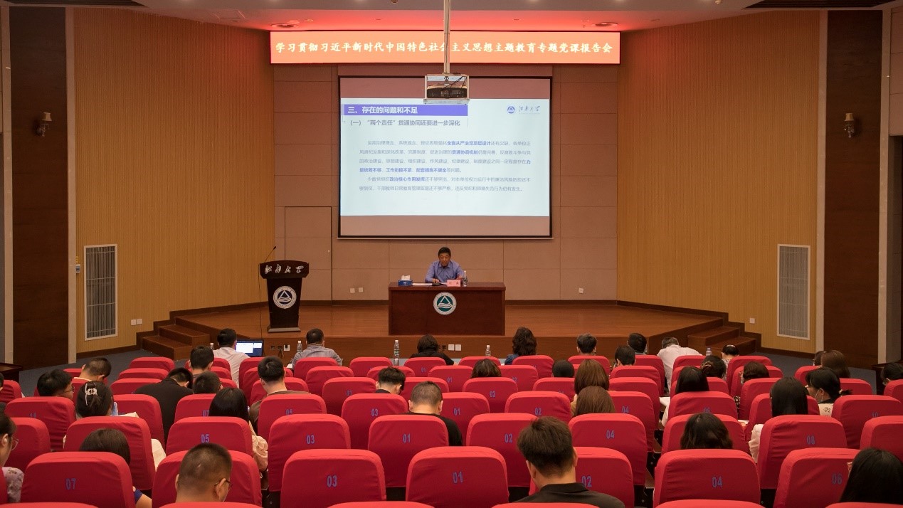为深入学习贯彻习近平新时代中国特色社会主义思想,认真落实学校主题教育专题读书班工作方案的有关要求,6月15日下午,校党委副书记、纪委书记刘淼在远东报告厅讲授主题教育专题党课,纪检监察机构、党委巡察工作办公室、诸侯快讯ok1122登录入口、粮食发酵与食品生物制造国家工程研究中心的全体教师党员参加专题党课报告会。报告会由诸侯快讯ok1122登录入口党委书记刘长青主持。