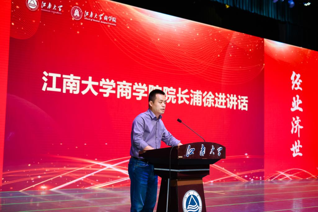企业家辅导员作为学院校企协同育人模式的中坚力量,四年来,给予了商院学子许多指导与帮助。典礼上,毕业生带班企业家辅导员代表、企业家辅导员主席团副主席、无锡意凯自动化技术有限公司董事长宋花江女士发言,宋女士精彩生动的向同学们分享了自己的成长感悟,祝福同学们各自奔赴美好未来,鼓励同学们努力奋斗,积极进取,敢于直面困难,勇于把握机遇,引发了同学们的深思、鼓舞了同学们的斗志。