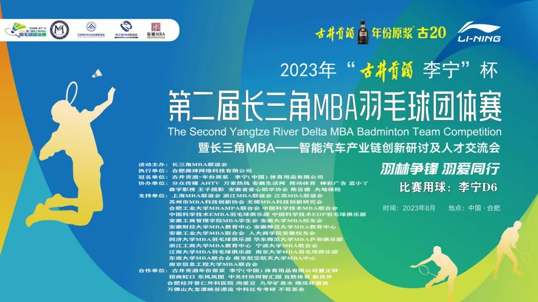 为促进长三角地区MBA高校及MBA学员的交流与友谊,展现各MBA教育学院的团队协作精神,推动全民健身运动,丰富MBA文化,扩展企业经济发展空间,2023年8月18日-20日,第二届长三角MBA羽毛球团体赛暨长三角MBA—智能汽车产业链创新研讨及人才交流会在安徽省合肥市举行。