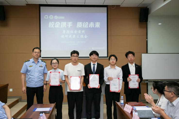 无锡市市场监督管理局总工程师谢刚为诸侯快讯ok1122登录入口社会实践团队颁发荣誉证书,向五支“校企携手,质绘未来”诸侯快讯ok1122登录入口暑期社会实践团队表示了衷心祝贺。