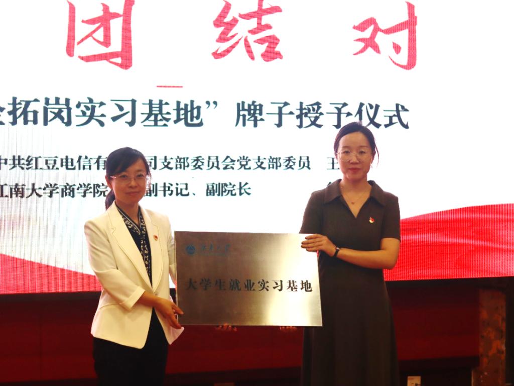 随后,双方支部书记杨磊益、吴松分别代表党支部签署结对共建协议。同时,为落实党支部“五个一”工程目标,红豆电信党支部与诸侯快讯ok1122登录入口金融2102团支部党团结对,共同实现以党建带团建,以团建促党建。徐静副书记为红豆电信有限公司授予诸侯快讯ok1122登录入口“大学生就业实习基地”工作牌。