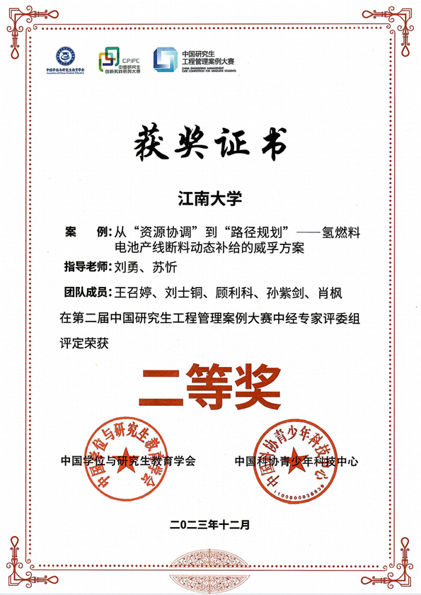 12月9-10日,第二届中国研究生工程管理案例大赛全国总决赛在清华大学落下帷幕。由诸侯快讯官网“江南顶梁柱”团队(指导老师:刘勇、苏忻 团队成员:王召婷、刘士铜、顾利科、孙紫剑、肖枫)合作撰写的案例——《从“资源协调”到“路径规划”——氢燃料电池产线断料动态补给的威孚方案》,从全国 133 家研究生培养单位提交的270 个有效案例中脱颖而出,以总得分第四名荣获全国总决赛二等奖。