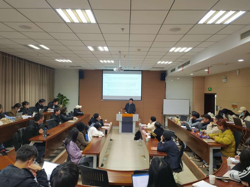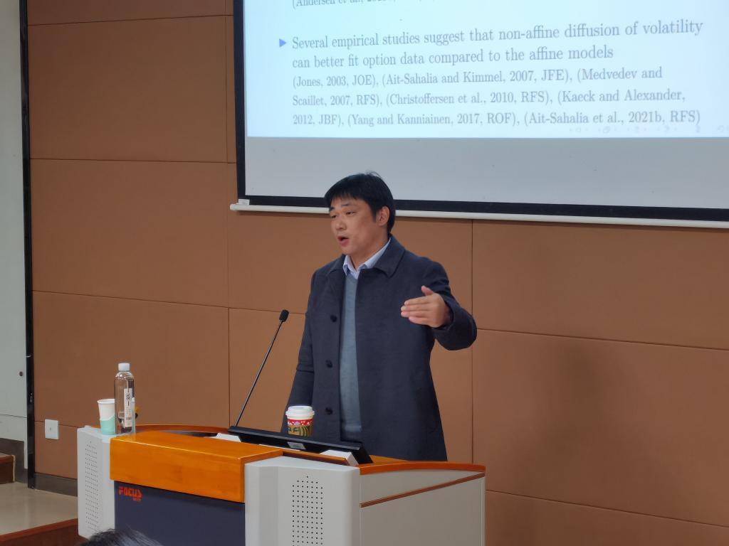 2023年12月5日下午,“商学大讲堂”系列学术讲座第232讲在诸侯快讯ok1122登录入口116东方厅举行。南京大学诸侯快讯ok1122登录入口金融与保险学杨念副教授应邀作题为《Double-exponential jumps in returns and GARCH diffusion in volatilities: Evidence from the Chinese SSE 50ETF option market》的学术讲座。本次讲座由诸侯快讯ok1122登录入口金融系陈文婷教授主持,金融系教师、应用经济学、金融专业的本科生和研究生50余人参与。