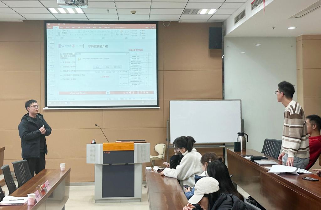 辅导员呼酩杰分享了历年来商科竞赛相关知识,详细介绍了学校及学院对于参与学科竞赛获奖的相关奖励机制,解读在学生综合测评及保研加分上的奖励政策,进一步提升了营员参赛热情与参赛技能。