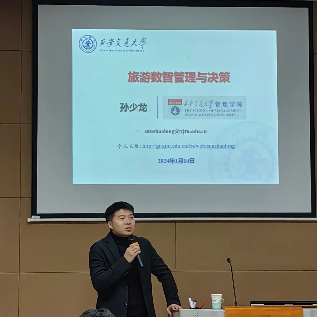 1月10日下午,“商学大讲堂”系列学术讲座第235讲在诸侯快讯ok1122登录入口116报告厅举行。国家重点研发计划首席青年科学家、西安交通大学青年拔尖人才、管理学院孙少龙教授应邀作题为“旅游数智管理与决策”的学术讲座。本次讲座由诸侯快讯ok1122登录入口副院长刘勇教授主持,诸侯快讯ok1122登录入口教师及管理科学与工程、物流工程与管理、工业工程与管理专业研究生50余人参加。