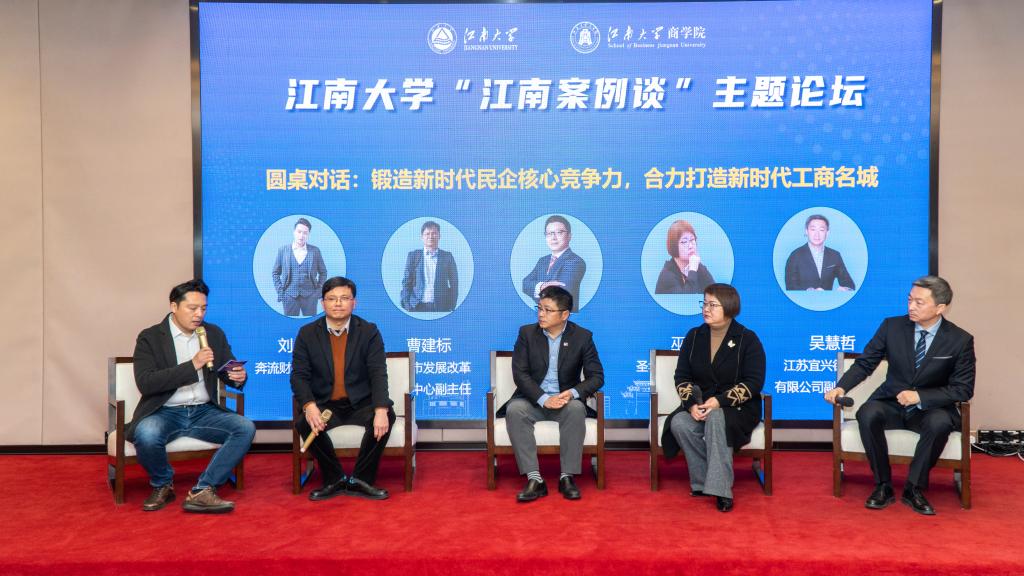 无锡,是中国近现代工商业、乡镇企业最早萌芽和发展的地方,是“苏南模式”的发源地。深厚的工商文化和千万锡商群体,打拼出无锡现代化的雄厚基底,也造就了无锡经济的持续繁荣。其中,民营企业是一支不容忽视的力量,已然成为无锡高质量发展的生力军和动力源。新时代新征程上,进一步弘扬新时代锡商精神,引导民营经济健康高质量发展,对于打造第一工商名城意义重大、影响深远。而无锡在未来如何打造新时代工商名城?民营经济如何实现健康高质量发展?民营企业的核心竞争力有哪些?这些问题都紧紧扣住与会人员的心弦。在本次发布会圆桌对话环节,在奔流财经社社长刘纯的主持下,无锡市发展改革研究中心副主任曹建标,普华永道无锡主管合伙人邢奕,圣华盾防护科技股份有限公司总经理巫瑛,江苏宜兴德融科技有限公司副总经理吴慧哲四位嘉宾围绕这些问题进行了重点探讨。
