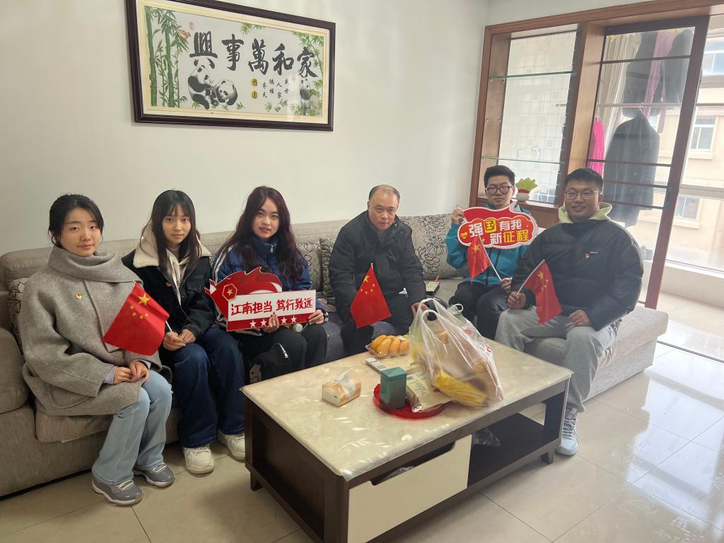 第一小组来到章维兴同志的家中进行慰问。章维兴同志1982年应征入伍,在南京军区第12军36师06团二营二机连服役,1984年7月随部队参加了“老山、者阴山”地区的对越防御战。说起那段烽火岁月,章维兴同志眼神坚毅,斗志昂扬,语重心长地对同学们讲道,要铭记历史、勇于担当,展现出新时代青年的精神风貌。