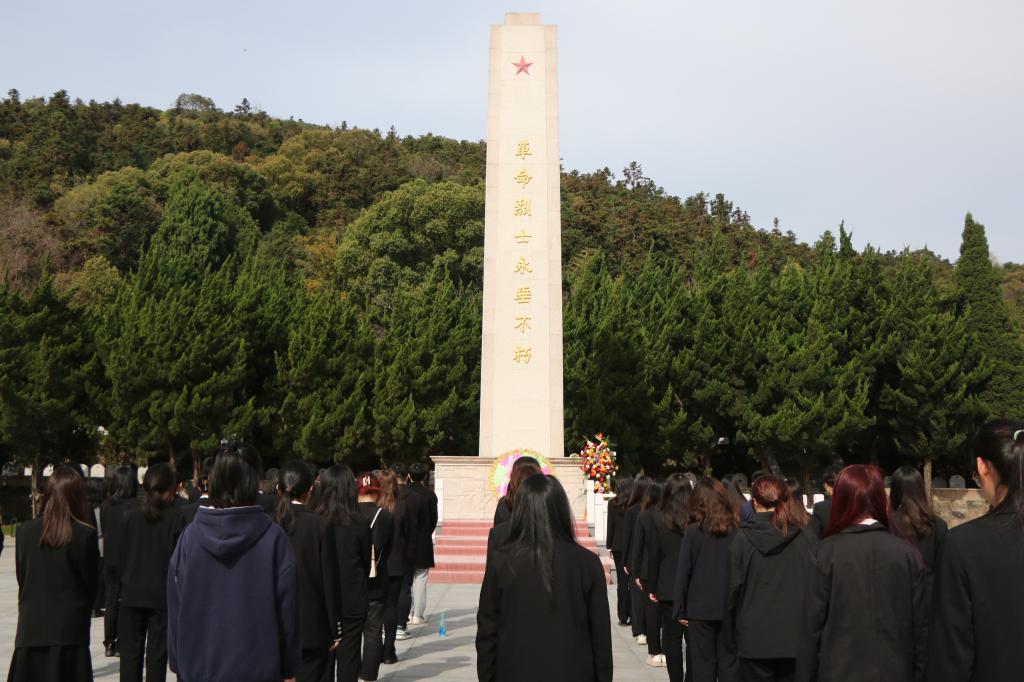 陵园里,松柏苍翠,碑石林立,诉说着先烈们不朽的功绩。全体师生在此举行庄严的献花仪式。学生党员代表郑重抬起花圈,一步步走向烈士墓前,将鲜花轻轻放在墓碑前,寄托对先烈的思念和敬仰。接着,全体师生肃立在烈士墓前,默哀致敬,向那些英勇无畏的先烈们表达深深的敬意和感激之情。