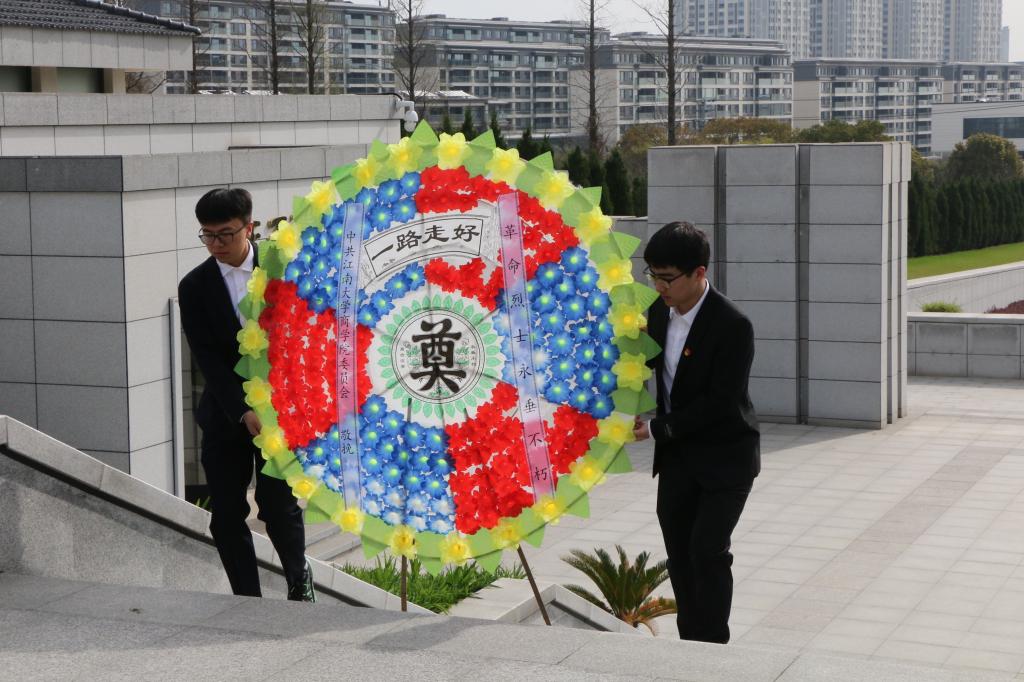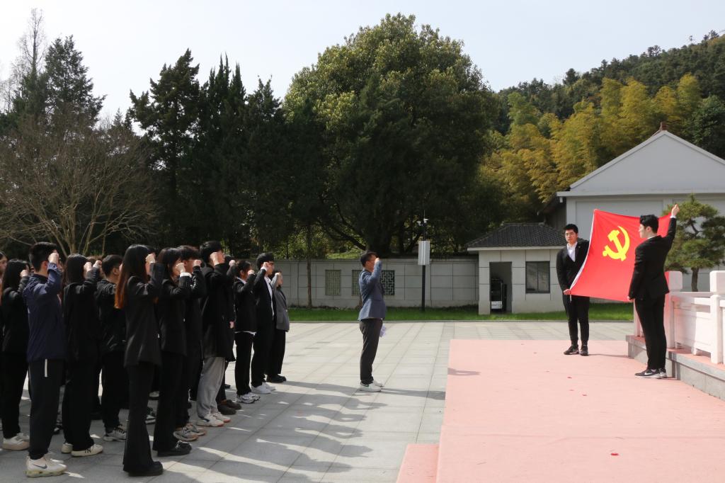随后,全体师生面对鲜红的党旗,庄严地举起右手,重温入党誓言。洪亮的声音仿佛穿越历史,告诉先烈们当代青年一代誓要继承先烈遗志,发扬革命传统,努力学习,积极进取,为实现中华民族伟大复兴的中国梦贡献自己的青春力量。在一座座墓碑前,师生们脚步沉重,伫立良久。