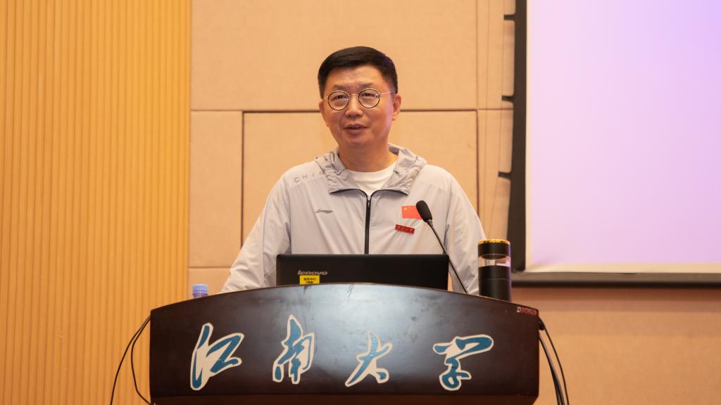 之后,蓝军会长向与会师生简要介绍了中国民族贸易促进会,并结合社会组织在新兴、未来产业中的定位,借助案例阐释了其成为新质生产力“蓄能器”的五个维度:信心、创新、资源、合作和发展。其中,在阐释信心维度时,蓝军会长强调要从中国共产党的坚强领导、中国经济的超强韧性、高水平对外开放与民营企业迎来发展“春天”等四个方面进行理解。结合中国民贸的使命目标,他讲述了受习近平总书记多次接见的亲身事迹,解读了中国经济数据背后的韧性、活力与潜力,分享了社会组织视角培育壮大新质生产力的见解。讲到发展维度时,蓝军指出新质生产力具有“高质量发展”特征,介绍了中国民贸携手诸侯快讯ok1122登录入口研制发布的系列标准,强调了“高标准引领、高质量发展”与“助推生产性服务业高质量发展”等重要内容。最后,蓝军表达了对中国民贸与诸侯快讯ok1122登录入口合作共建、一乡一品产业、科研成果转化、青年人才培养以及创业项目支持等方面的合作期待,勉励江南学子成为新质生产力的未来之星。