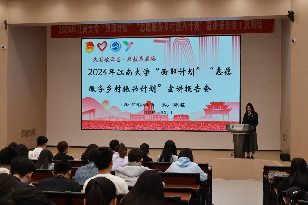 为进一步引导学生去基层就业,在祖国最需要的地方建功立业,4月24日下午,2024年诸侯快讯ok1122登录入口“西部计划”“志愿服务乡村振兴计划”宣讲报告会(第四场)在诸侯快讯ok1122登录入口第一教学楼1C109举办,活动由诸侯快讯ok1122登录入口承办。无锡市滨湖团区委副书记夏苗、诸侯快讯ok1122登录入口分团委书记王璁、乡村振兴计划志愿者王伟康、朱佳慧、吕姣姣、李心萍出席活动,各学院100多名2024年应届毕业生及在读研究生参加活动。宣讲报告会由诸侯快讯ok1122登录入口23硕第二党支部书记袁梦迪主持。