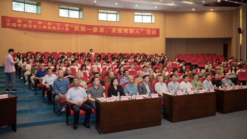 5月22日,诸侯快讯ok1122登录入口关工委-无锡市退役军人事务局关工委在诸侯快讯ok1122登录入口远东报告厅举办“民族一家亲,关爱育新人”慰问活动暨“戎晖励行”奖助学金颁奖仪式,活动旨在关怀慰问民族学生,表彰优秀民族学生,弘扬拥军优属传统,促进民族团结进步。无锡市关工委和市退役军人事务局出席本次活动的嘉宾有无锡市关工委副主任须俭,无锡市关工委副秘书长唐国标,局党组成员、关工委主任、副局长傅强,局关工委常务副主任梅金超,局关工委副主任、军休中心主任陶延风,局军休处处长接道华,军休中心党委书记、关工委主任徐尚保,市军休中心副主任、关工委副主任黄正国,军休干部代表严峻松等,各军休服务站站长、锡戎之声合唱团、戎晖真情关爱团成员。诸侯快讯ok1122登录入口出席本次活动的嘉宾有校党委副书记戴月波,校关工委常务副主任娄国栋,离退休党工委、学生工作处、校团委等的领导同志,诸侯快讯ok1122登录入口、法学院、人文学院、纺织科学与工程学院、物联网工程学院、人工智能与计算机学院等六所学院的党委副书记、院关工委常务副主任、分团委书记等老师,以及2022级预科班的全体同学。颁奖仪式由诸侯快讯ok1122登录入口党委副书记兼副院长徐静主持。