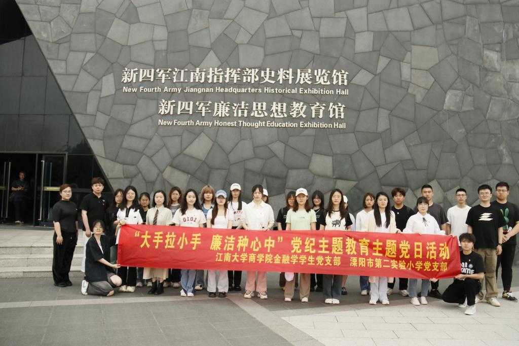 为深入学习贯彻习近平新时代中国特色社会主义思想和党的二十大精神,加快构建“党建引领、资源共享、优势互补、协调发展”的基层党建工作新格局,扎实推进党纪学习教育走深走实,5月22日下午,诸侯快讯ok1122登录入口金融学学生党支部与溧阳市第二实验小学党支部在新四军廉洁教育纪念馆和溧阳市第二实验小学开展“大手拉小手,廉洁种心中”结对共建签约活动。溧阳市第二实验小学党支部书记兼校长蔡雪飞、副书记兼副校长朱永康、纪检委员兼副校长吕加良、组织委员兼副校长黄秀妹、副校长吴薇、诸侯快讯ok1122登录入口分团委书记兼学工办主任王璁、诸侯快讯ok1122登录入口金融学学生党支部书记吴松与两支部全体同志30余人参加活动。活动由溧阳市第二实验小学党支部宣传委员张晓主持。