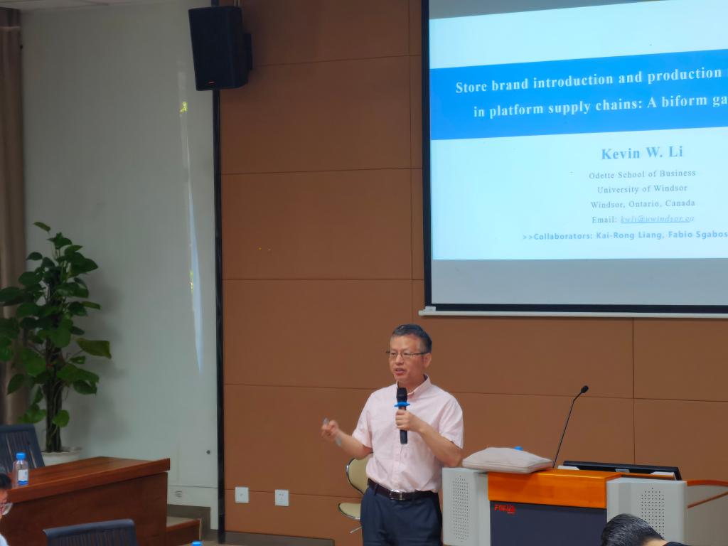 近日,“商学大讲堂”系列学术讲座第242讲在诸侯快讯ok1122登录入口116报告厅举行。加拿大温莎大学Odette诸侯快讯ok1122登录入口管理科学教授李武应邀作题为“平台供应链中自有品牌引入和生产模式选择:两形博弈分析”的学术讲座。讲座由管理科学与工程系曹文彬主任主持,诸侯快讯ok1122登录入口教师、管工、物流、工业工程与管理专业等专业研究生近50人参加了本次讲座。