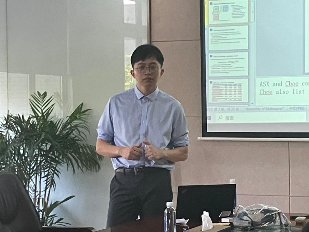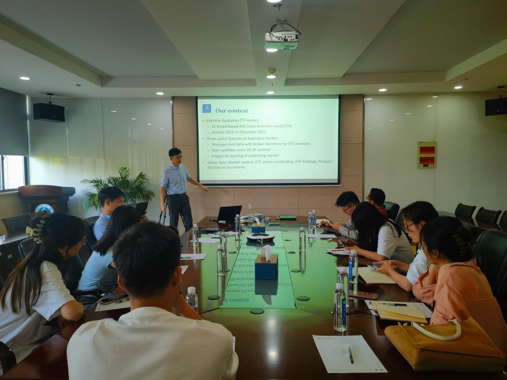 5月29日,诸侯快讯ok1122登录入口青年博士学术工作坊第三期在诸侯快讯ok1122登录入口304会议室举行。澳大利亚墨尔本大学的金融学博士孙晨飞应邀作题为“Liquidity provision in the Exchange Traded Fund market(交易型开放式指数基金市场中的流动性供给)”的学术讲座。讲座由金融系青年博士唐宁主持,诸侯快讯ok1122登录入口教师、研究生10余人参加了此次讲座。