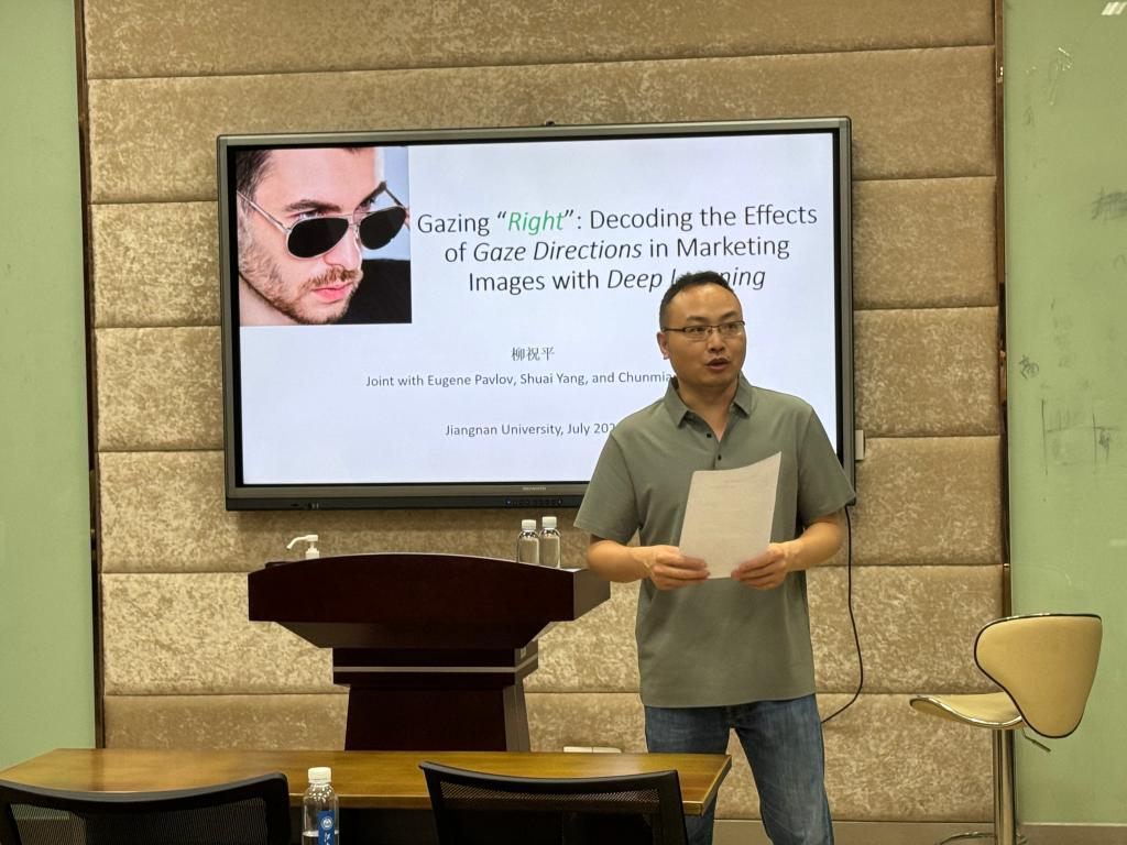 7月2日上午,青年博士学术工作坊第八期在诸侯快讯ok1122登录入口113报告厅举行。本次工作坊邀请了纽约市立大学巴鲁克学院杰克林诸侯快讯ok1122登录入口助理教授柳祝平老师,带来了题为“Gazing ‘Right’: Decoding the Effects of Gaze Directions in Marketing Images with Deep Learning”的学术报告。张建强教授主持了本期工作坊,诸侯快讯ok1122登录入口教师、各专业研究生和国际学生参加了此次讲座。