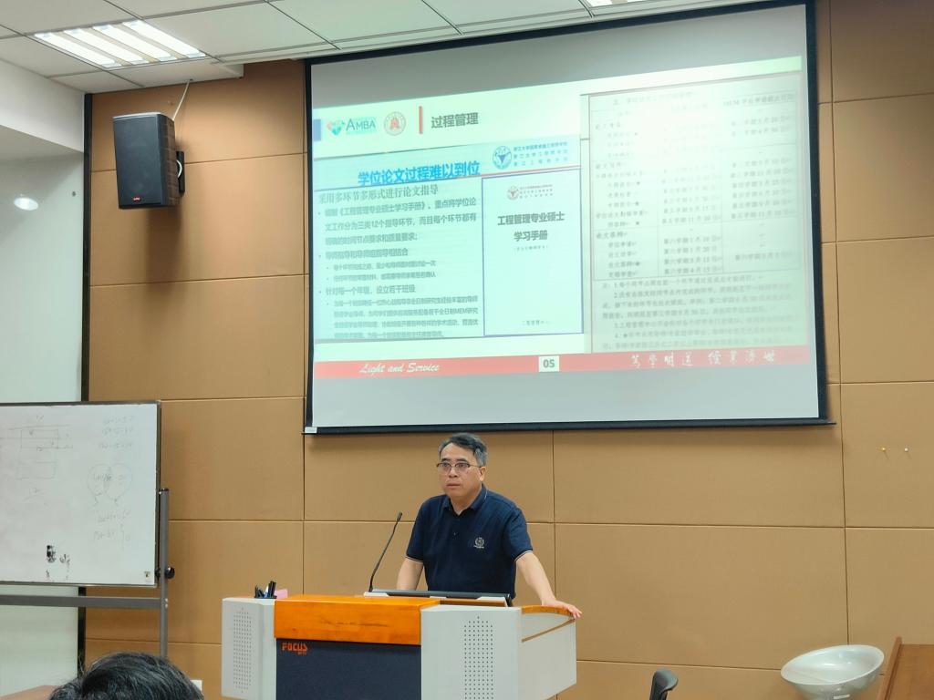 学位论文的撰写是培养MBA/MEM专硕学生解决行业产业实际问题综合能力的关键路径,是研究生培养的一个重要环节,学习规范论文基本要求、创新论文导师指导方法与方式、探讨学位论文模式、优化论文管理工作制度与流程,对提高专硕学生论文质量具有非常重要的意义。MBA教育中心办公室主任唐杰老师解读了全国MBA教学指导委员会最新发布的《工商管理专业学位类别硕士学位论文基本要求(试行)》,从学位论文基本原则、选题要求、格式规范、论文类型和评价要素等方面进行了详细说明,对诸侯快讯官网近五年MBA/MEM学位论文管理状况进行了分析,提出了优化学位论文管理工作的若干思考;诸侯快讯ok1122登录入口徐敏丽副教授、周五七副教授分享了参加全国MEM教指委举办的论文评审专家培训与研讨会后的体会,两位老师分别介绍了培训会的内容,并对MEM学位论文的标准要求、MEM案例大赛的组织进行了说明。作为多次指导MBA学生获得校优秀专硕论文的导师代表,诸侯快讯ok1122登录入口朱晋伟教授分享了如何上好MBA《论文选题与研究方法》课程,如何指导MBA学生写好学位论文的体会。