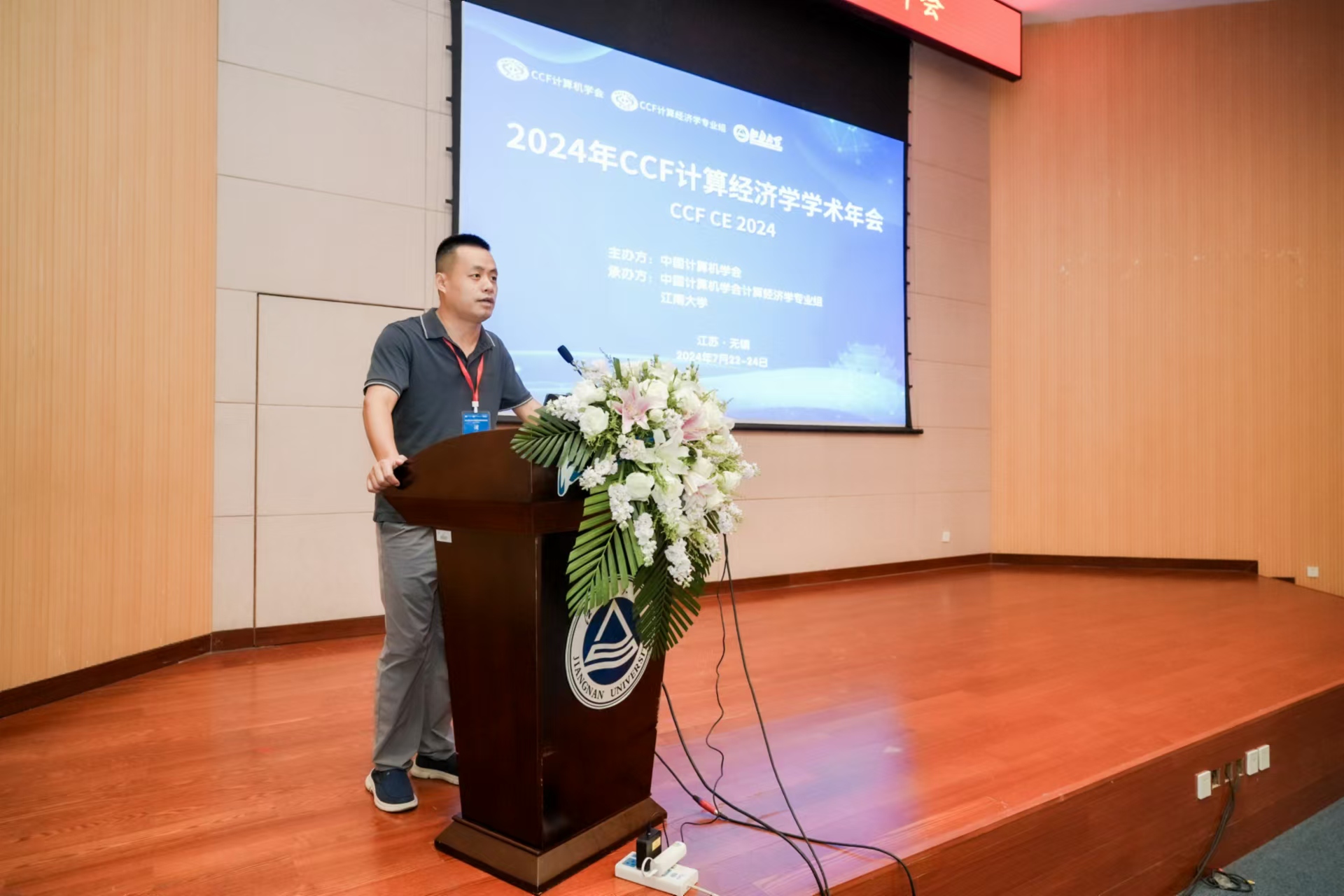 开幕式结束后,四位大会报告人分别作大会邀请报告。邓小铁教授在题为“AI for Economics”的大会报告中介绍了“人工智能经济学”这一新兴跨学科领域,综合评述了智能经济计算分析方法和实验经济学实践设计方面的最新研究进展,展示了AI作为推动经济学研究和应用的新引擎的角色。清华大学教授、国家海外高层次人才计划获得者陈婧教授在题为“Rational Proofs with Multiple Provers”的大会报告中提出,越来越多的计算任务正被外包给强大的服务提供商,交互式证明是设计高效可验证计算委托协议的常用模型,她强调理性证明是一种基于支付的交互式证明,并重点介绍了理性证明的不同建模方法和各自能力。武汉大学经济与管理学院院长聂军教授在题为“机器学习在宏观经济学的应用”的大会报告中提到,尽管异质性动态宏观模型能更有效地研究一系列重大宏观问题,但其求解难度急剧上升,面临维度灾难问题,他详细介绍了机器学习在解决这一问题上所具有的巨大潜力。清华大学东昱晓副教授在题为“理解与探索大模型能力涌现”的大会报告中,分享了GLM-4模型能力提升研发过程中的探索,并以GLM-4 All Tools智能体模型为例,展示了其自主理解用户意图、自动规划复杂指令、自由调用网页浏览器、代码解释器及多模态模型等能力。