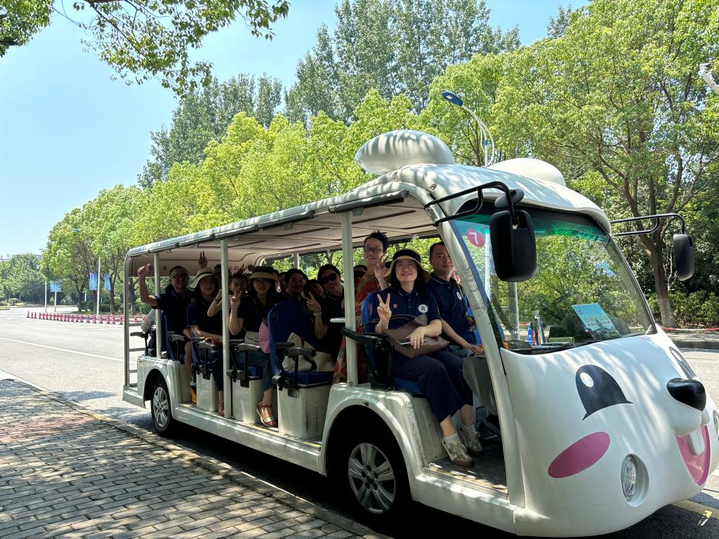 汪洁对会计2000级3班校友们的返校表示热烈欢迎,她带领校友们乘坐校园观光车游览校园,并详细介绍蠡湖校区的美丽风光及各个建筑的功能定位等情况。校友们驻足欣赏并拍照留念,对学校设施的与时俱进、日臻完善赞不绝口。游览结束后,校友们前往一食堂用餐,席间同学们笑语连连,那份久违的亲密与熟悉感油然而生。