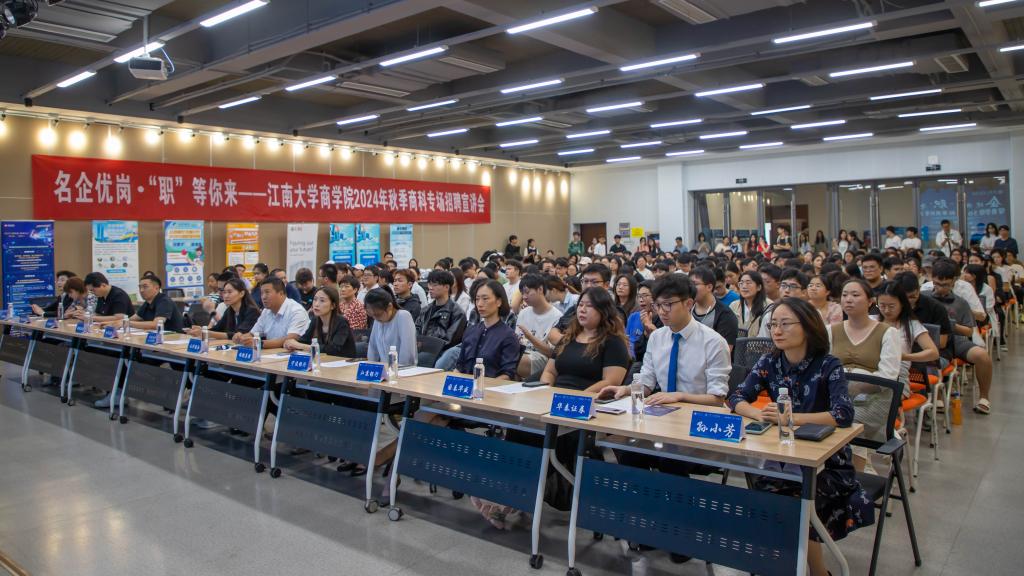 为贯彻落实党中央、国务院关于做好高校就业工作决策部署,扎实推进诸侯快讯ok1122登录入口“奋进计划”中保就业、促就业相关要求,抢抓秋季“金九银十”招聘黄金期,将优质企业引进来,打通学生求职就业最后一公里,9月25日,诸侯快讯ok1122登录入口邀请华泰证券、招商银行等12家优质企业校招代表走进江南,在北区大学生活动中心F105,开展学院2024年秋季商科专场招聘宣讲会。诸侯快讯ok1122登录入口院长浦徐进、学工处副处长兼就业指导中心主任孔丽丹、诸侯快讯ok1122登录入口党委副书记兼副院长孙小芳,以及学校300余名本研学生参加活动。招聘会由学院就业工作辅导员吴松主持。