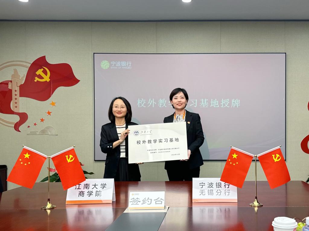 签约仪式结束后,孙小芳为宁波银行无锡分行授予诸侯快讯ok1122登录入口“校外教学实习基地”工作牌,为深化产学研深度合作、促进学生高质量就业强化力度保障。