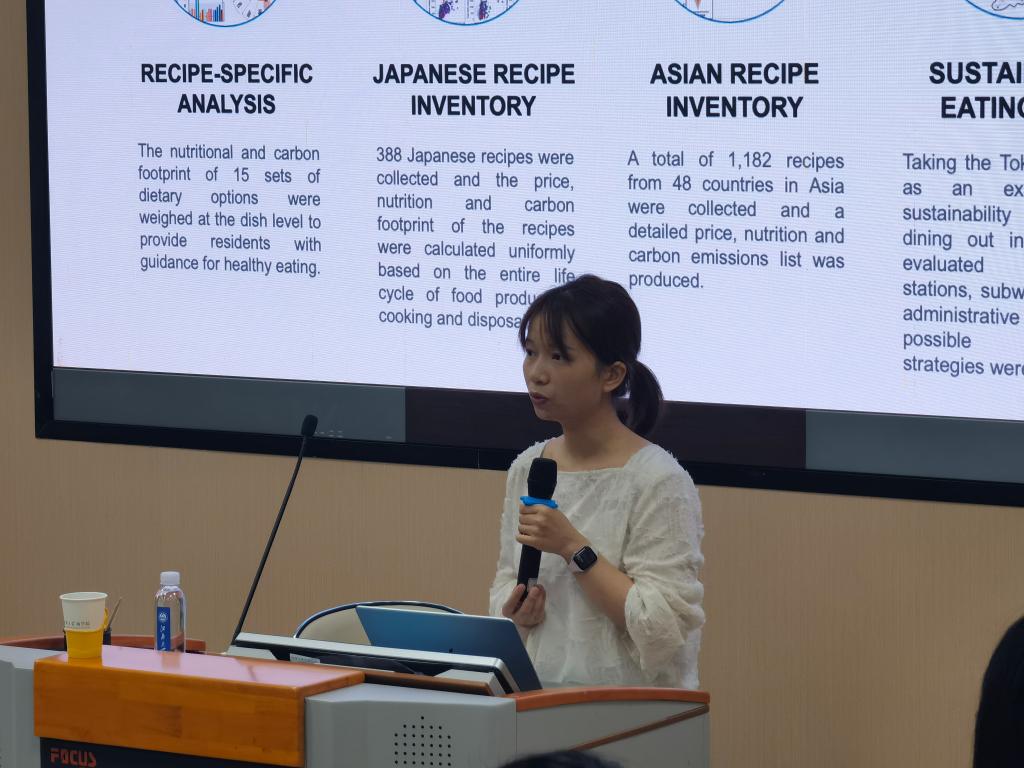 首先,龙吟副教授介绍了她的六个主要研究领域,包括碳足迹的量化、碳足迹特征分析、基于人工智能的可持续城市生活方式、高龄少子化社会问题、可持续饮食以及电动汽车用户续航距离焦虑的定量化分析。