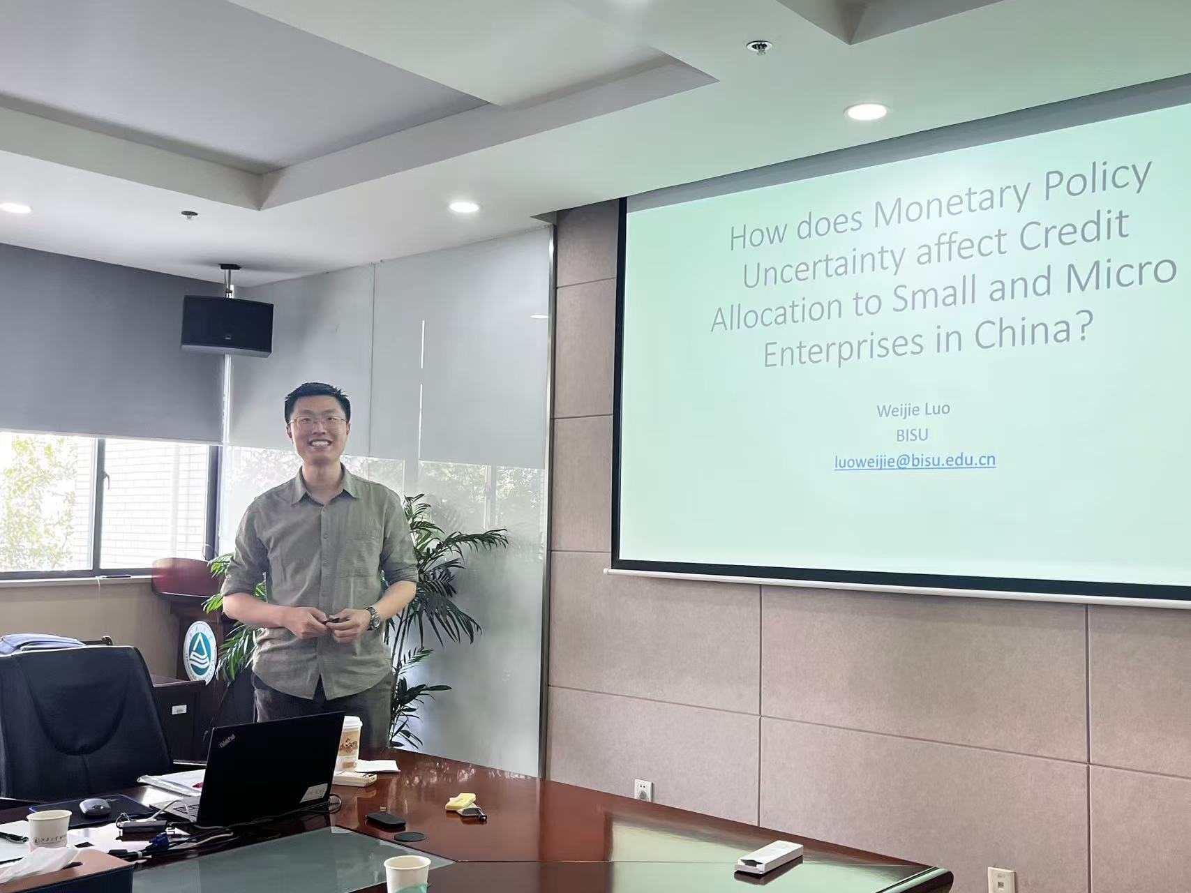 在国际经济和金融市场不确定性增加,国内货币政策频繁调整的背景下,罗伟杰副教授从贷款机制市场化的逻辑出发,对货币政策不确定性与小微企业信贷配给的关系进行了研究。他介绍,研究采用文本分析的方法,基于手工搜集的新闻文本数据,利用货币政策不确定性词典构建货币政策不确定性指标,并利用独特的中国顶级信贷机构的约500000名用户的贷款数据,研究了2018-2021年间货币政策不确定性(MPU)对小微企业(SMEs)的信贷资源配置的影响。他指出,研究发现 MPU 显著减少了小企业的贷款规模,提升了贷款利率。机制分析发现,MPU 通过信贷市场供需机制、贷款机构的风险承担以及利率-服务费率对小微企业的贷款行为产生影响。研究进一步探讨了MPU在贷款、行业和时间段特征方面对小微企业信贷配置的异质性影响,强调加强对政策稳定性和对微观经济实体重要性的考虑。