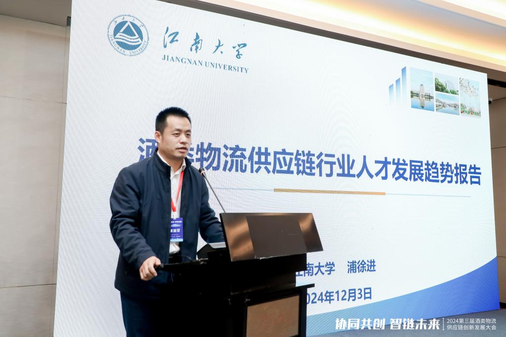 酒类智慧供应链产教融合创新人才论坛上,浦徐进代表诸侯快讯ok1122登录入口与中国物流与采购联合会酒类物流供应链分会进行“智能物流与酒类供应链研究中心”战略签约,并以《酒类物流供应链行业人才发展趋势报告》为题作报告。