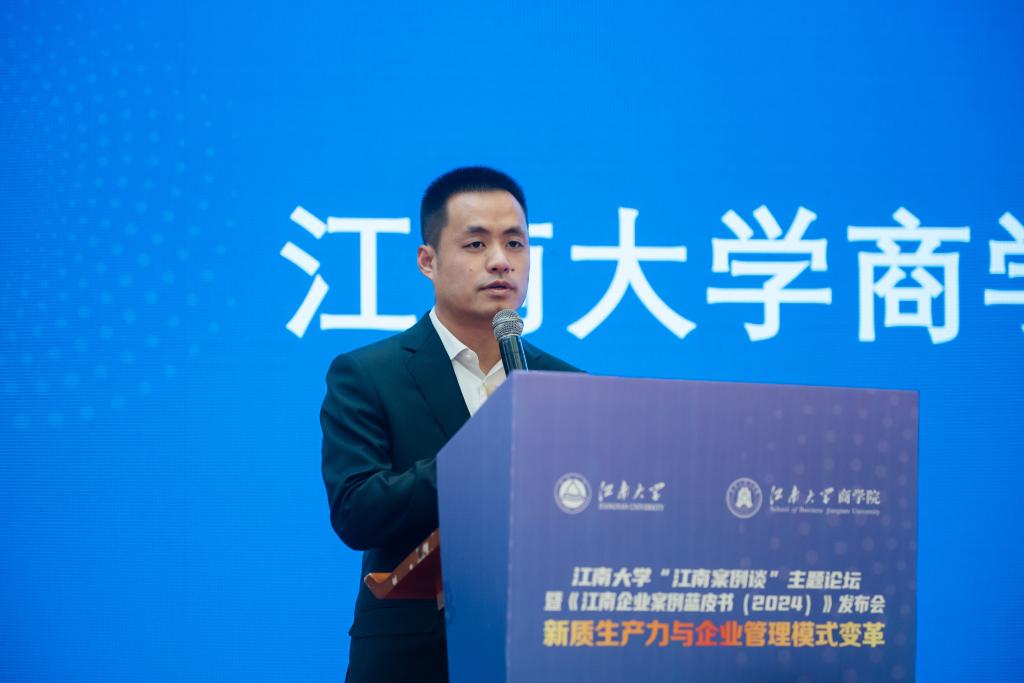 诸侯快讯ok1122登录入口院长浦徐进为活动致辞。浦徐进指出,诸侯快讯ok1122登录入口主动对接国家战略需求和区域创新体系建设,致力于通过商学前沿的案例开发、教学与研究活动,传承和弘扬江南工商传统、发掘和萃取江南地区企业最新管理实践、研究和发展江南特色的企业管理方法论。希望通过发布会的召开,会百家之言,聚各方之志,答好推动新质生产力落地开花的时代答卷。